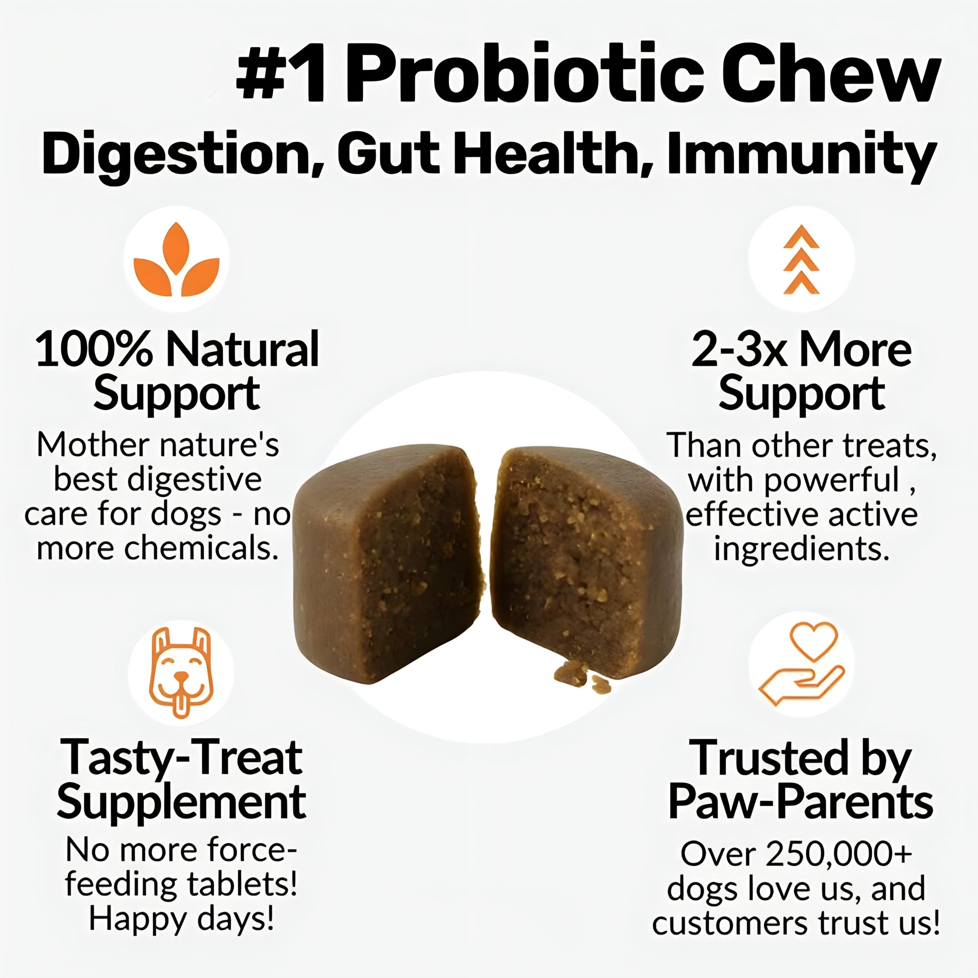 | 120 Pre, Pro & Postbiotic Treats per Tub | ||